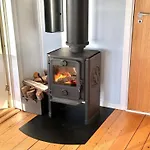 A fridge, a cooktop, and kitchenware are featured in a kitchen. The 1-bathroom villa is also a 52-minute drive from Sonderborg airport.